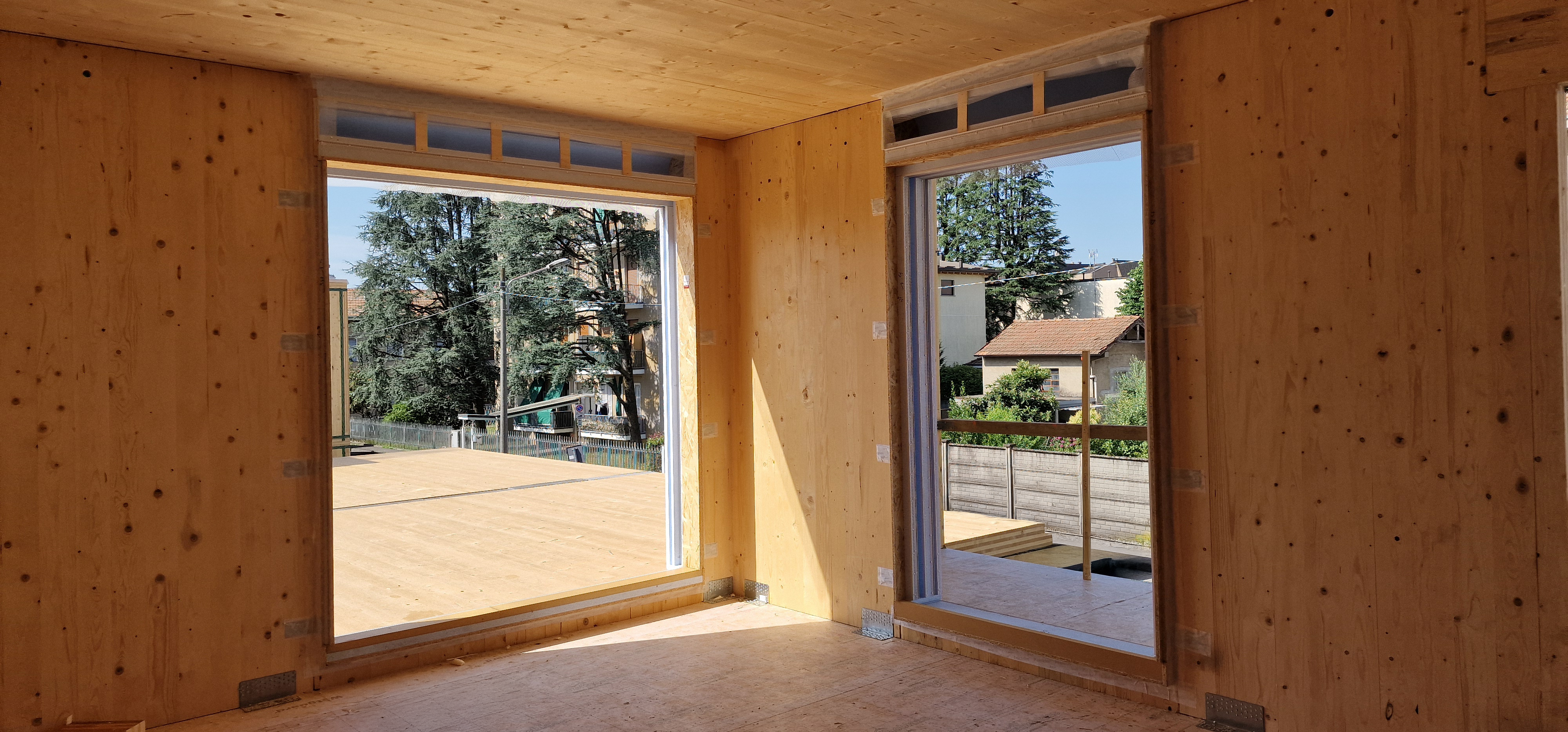 In questo contesto, Elan Sistemi è stata scelta per la fornitura e installazione dei monoblocchi coibentati, elementi chiave per garantire isolamento termoacustico, durabilità e integrazione tra serramenti e struttura in legno.